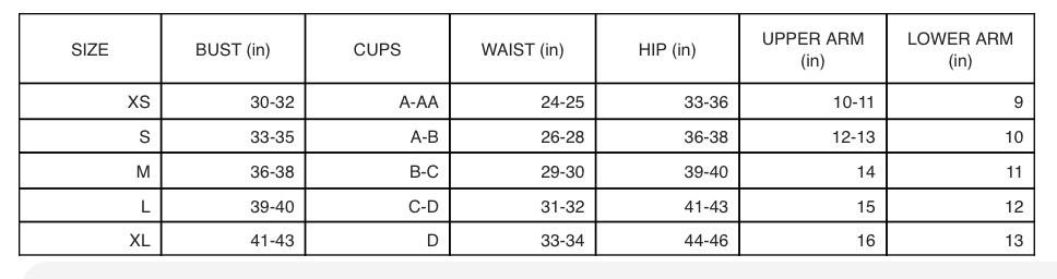 Size Chart: